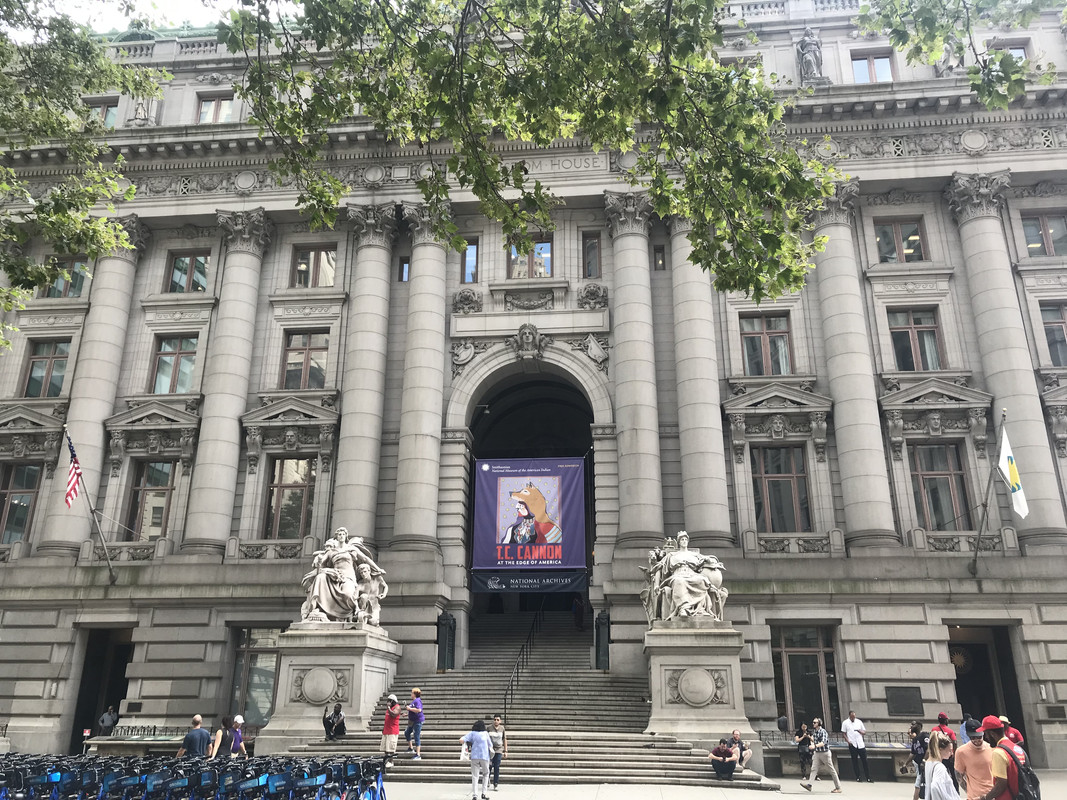Cass Gilbert, un conocido joven arquitecto de St. Paul, Minnesota, diseñó esta estructura. Su construcción se inició en 1900 y se completó en 1907. En total son 7 pisos que cubren tres bloques de la zona. El exterior presenta 44 columnas, cada una decorada con una cabeza de Mercurio. En los pedestales de entrada del edificio hay cuatro grandes esculturas. Son figuras femeninas sentadas que representan a América, Asia, Europa y África.
