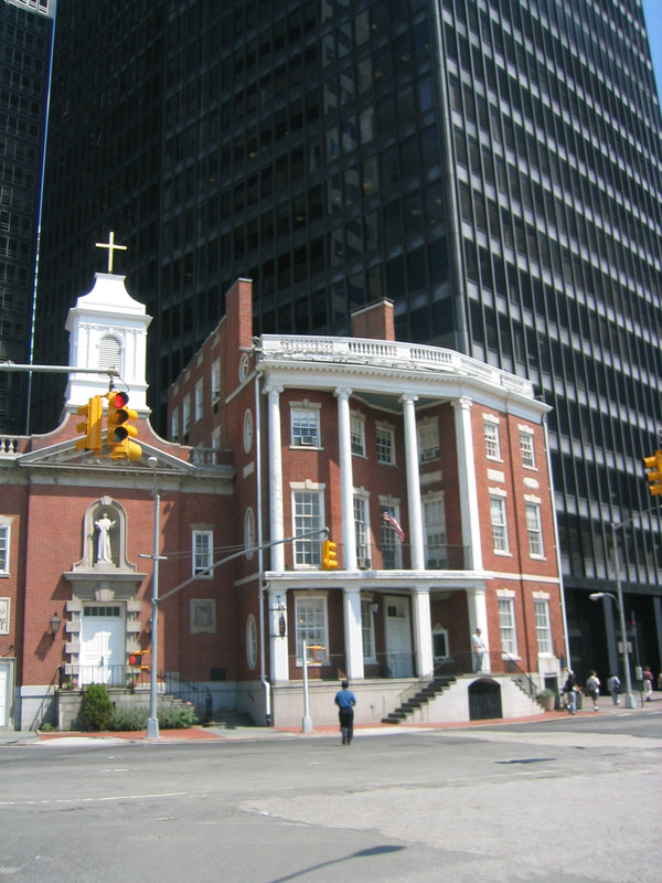 Esta iglesia pertenece a la Archidiócesis de Nueva York. Es un edificio que apenas levanta 3 plantas del suelo pero que ha sido respetado a pesar del impulso económico de la zona. Por este hecho despierta tanto la curiosidad de los visitantes que caminan por allí.